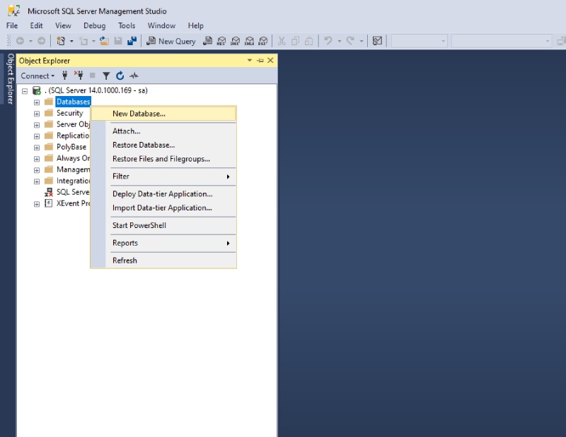 روی گزینه DataBase راست کلیک کنید سپس گزینه اول New DataBase را انتخاب نمایید