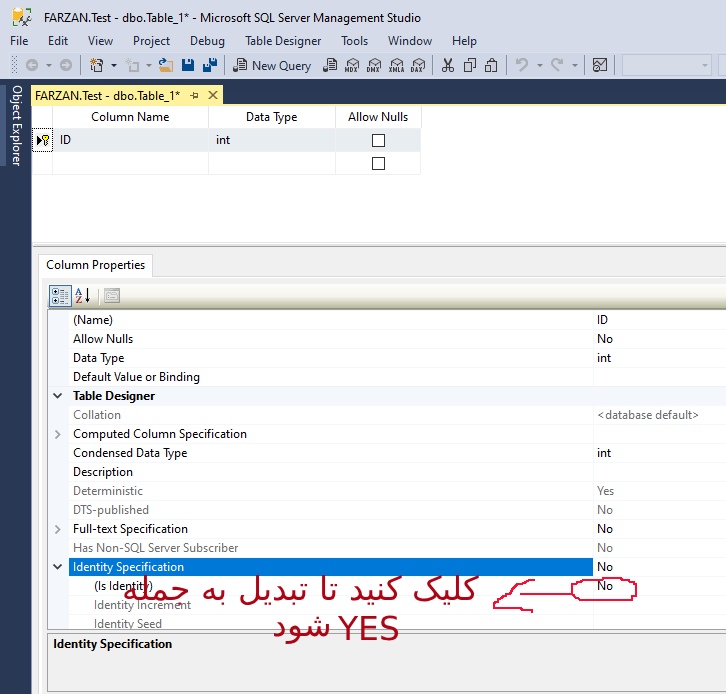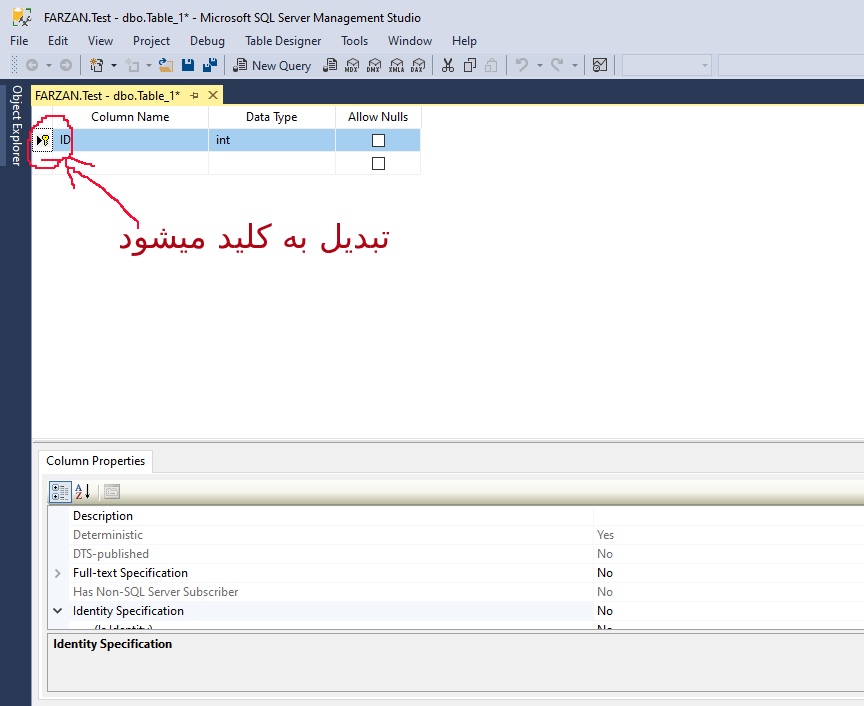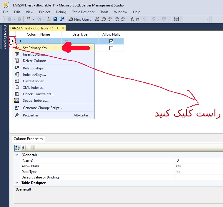 برای این که فیلد ID شما تبدیل به فیلد کلید شود باید روی فلش ابتدای همان فیلد راست کلیک کرده و سپس گزینه اول Set primary Key را انتخاب نمایید