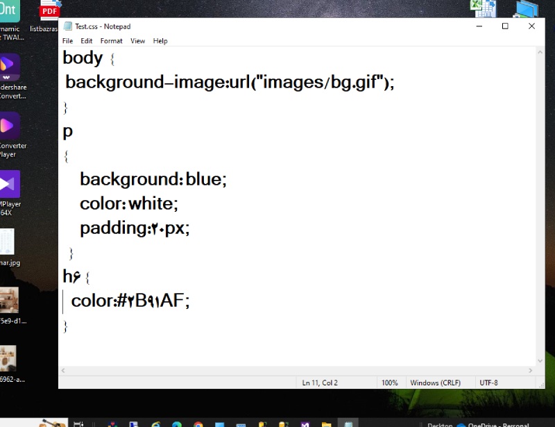 فایل را با برنامه NotePad باز کنید و کدهای Css را در آن وارد کنید. مانند تصویر زیر